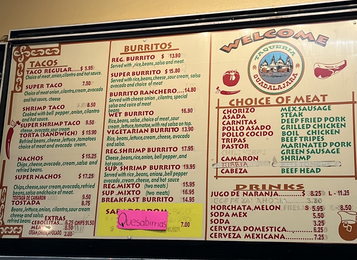 The menu at Taqueria Guadalajara offers a straightforward selection of Mexican and Latin American favorites, presented in a casual, unpretentious style. It’s the kind of place where you can easily stop by for a satisfying lunch or an informal dinner, enjoying comforting, familiar dishes that bring a sense of home-cooked warmth.